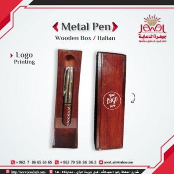قلم معدن في علبة فاخرة إمكانية الطباعة على العلبة وعلى القلم إمكانية طباعة علامتك التجارية بجودة عالية عدة موديلات من القلم المعدن اسعار خاصة على الكميات لمزيد من المعلومات الاتصال على الارقام التالية : 0795836362-0786656565